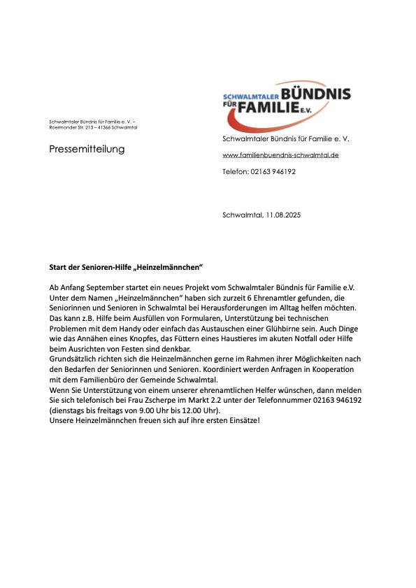 Vom Bündnis für Familie in Schwalmtal ins Leben gerufen gibt es bereits seit vielen Jahren den Seniorenbesuchsdienst, den Babybegrüßungsdienst, das Repaircafe und die Boutique „Wie neu“.